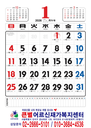 강서구 방문요양, 큰별어르신재가복지센터 2026 달력제작